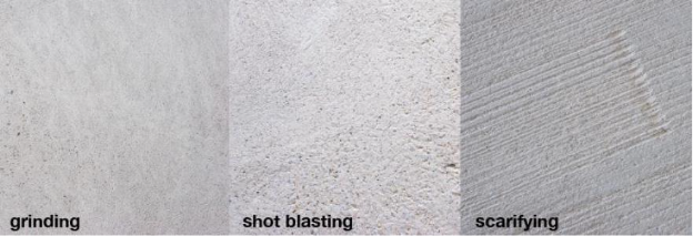 На данном рисунке представлены три вида обработки основания для последующего нанесения промышленных покрытий. Слева-направо: шлифовка, дробеструйка и фреза. Как мы видим из данной фотографии только фреза создаёт синусоиду равномерно увеличивая площадь контакта последующего покрытия с основанием как минимум на 100%. А порой и более.