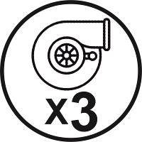 | 3 турбины BY-PASS – надежные влаго и пылестойкие турбины с низким уровнем шума, не более 75 dB. Можно работать в местах присутствия людей. | |